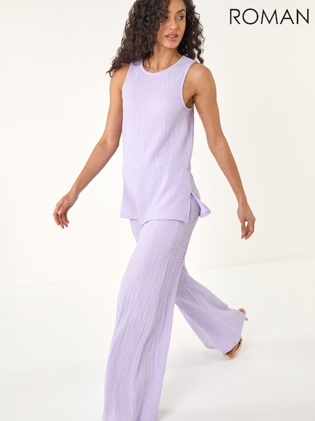 Purple Floral Border Print Elasticated Wide Leg Trousers