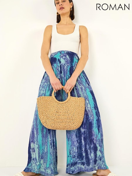 Roman Blue Abstract Palazzo Trousers