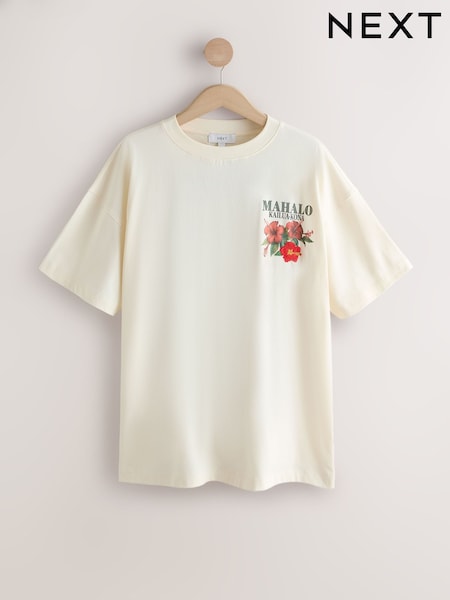 Ecru Graphic Print Beach T-Shirt