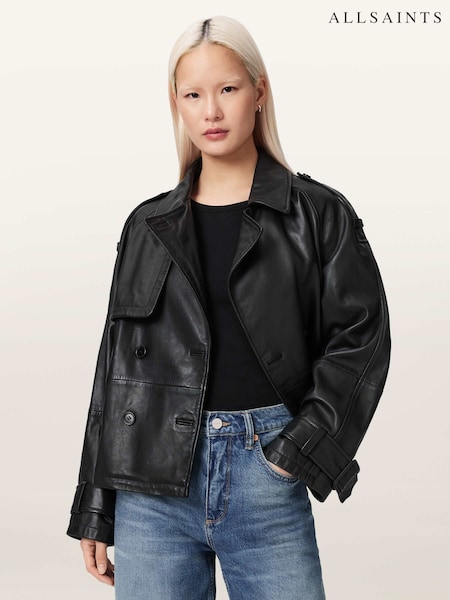 AllSaints Black Reya Cropped Leather Mac