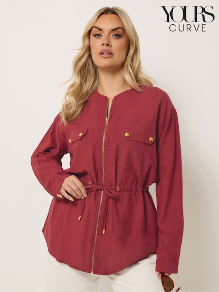 Yours Curve Red Linen Look Shacket