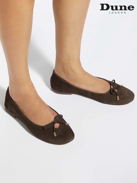 Dune London Brown Hilife Bow Suede Ballet Flat Shoes