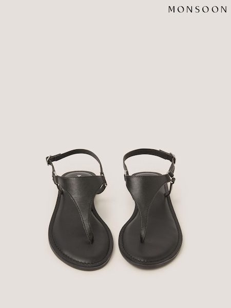 Monsoon Black Immy Toe Post Leather Sandals