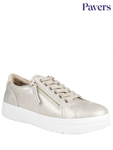 Pavers Soft Gold Wide Fit Zip & Lace Platform Trainers