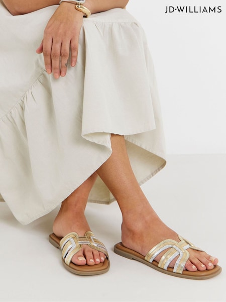 Metallic Standard/Wide Fit Chunky Beaded Toe Thong Sandals