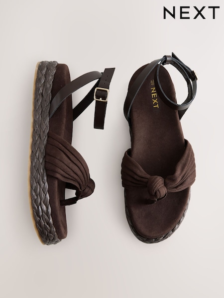 Chocolate Brown Raffia Knot Detailing Toe Thong Sandals