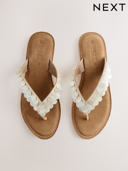 Metallic Standard/Wide Fit Chunky Beaded Toe Thong Sandals