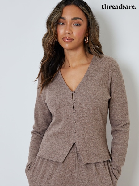 Threadbare Brown Ribbed V-Neck Lounge Cardigan