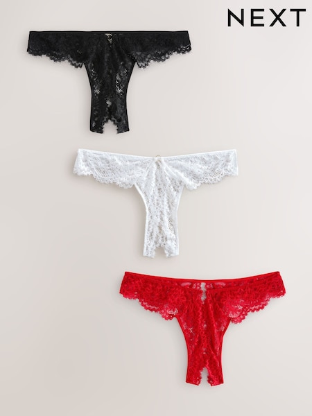 Black/White/Red Crotchless Thong Lace Knickers 3 Pack