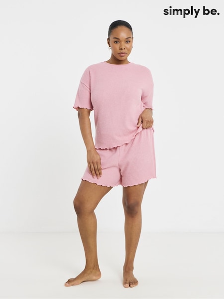 Simply Be Pink Waffle Lounge Shorts Set