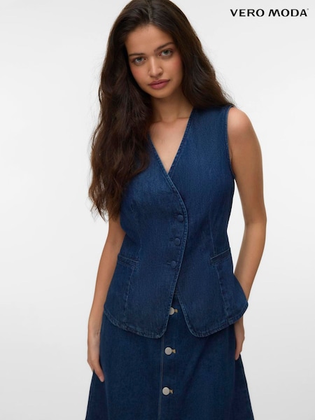 VERO MODA Blue Button Detail Denim Waistcoat