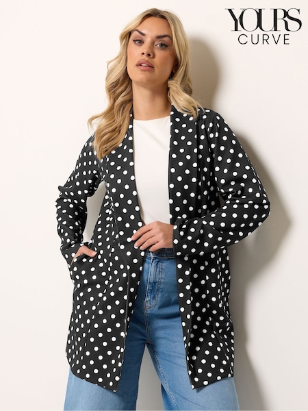 Yours Curve Black Mono Spot Print Scuba Blazer