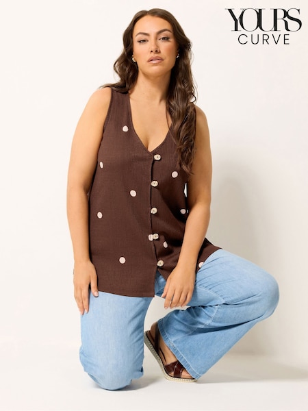 Yours Curve Brown Textured Waistcoat