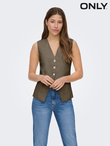 ONLY Grey Khaki V-Neck Button Through Tailored Waistcoat