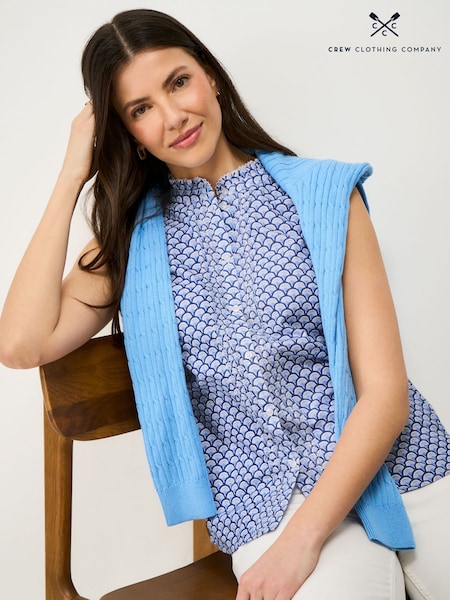 Crew Clothing Blue Harmony Cotton Frill Blouse