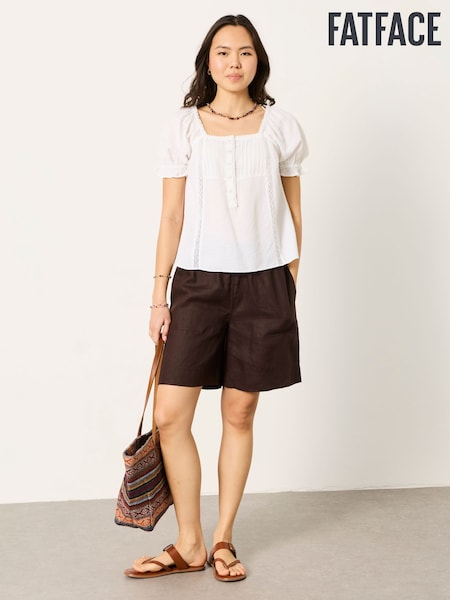 FatFace Lena White Linen Henley Top
