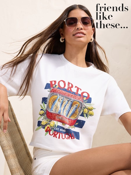 Friends Like These White Crew Neck Boxy Graphic Print T-Shirt