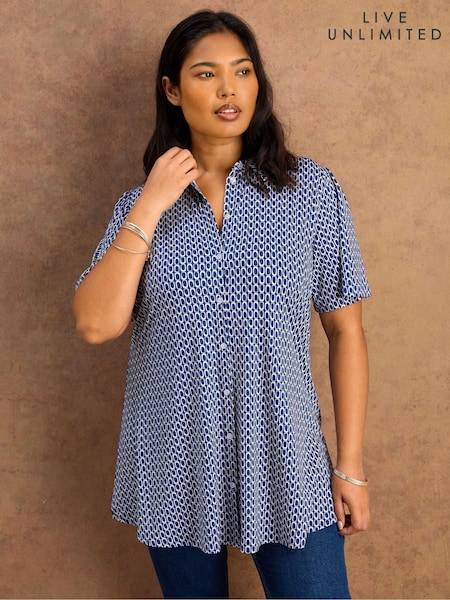 Live Unlimited Blue Petite Geo Print Short Sleeve Jersey Shirt