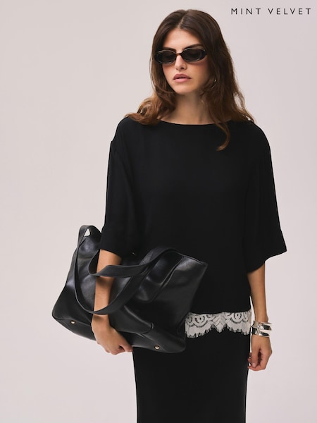 Mint Velvet Black Satin Lace Trim Top