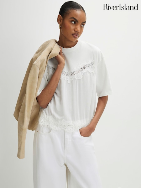 River Island White Short Sleeve Lace Front T-Shirt