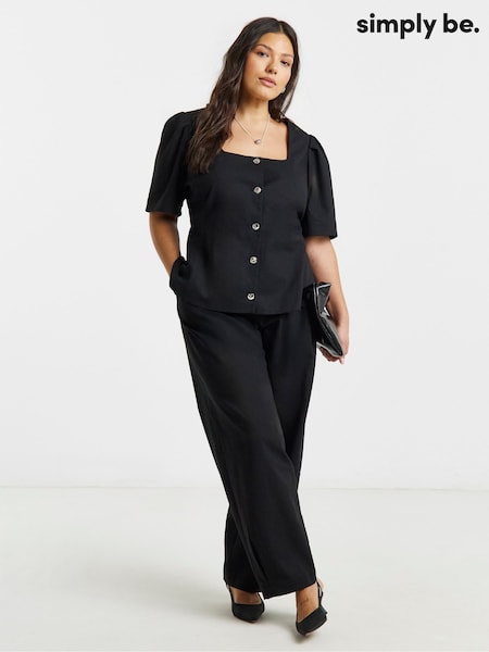 Simply Be Black Short Sleeve Square Neck Cropped Blouse