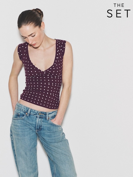 The Set 4 Pack Cross V-Neck Cap Sleeve Tops Plum Spot/Taupe/Light Pink/Pale Khaki