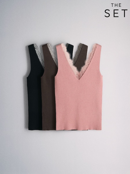 The Set 3 Pack V-Neck Lace Trim Vests Black/Chocolate Brown/Pink