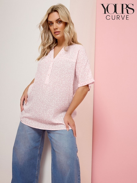 Yours Curve Pink Crinkle Notch Neck Top
