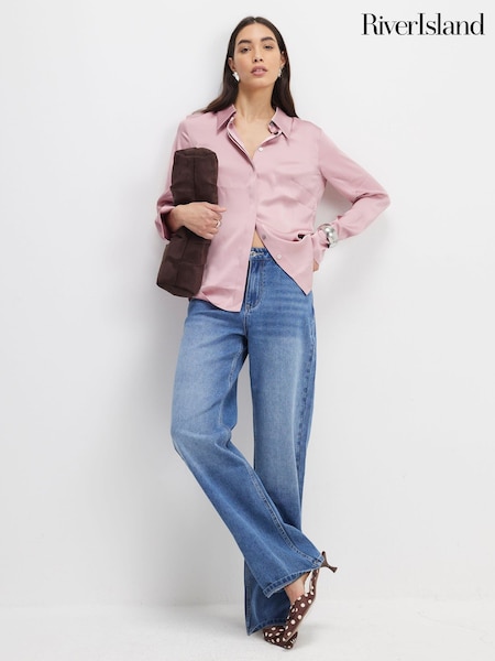River Island Pink Long Sleeve Satin Shirt