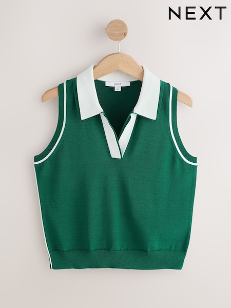 Green Smart Knit Sleeveless Polo Top