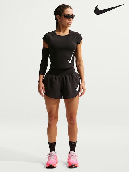 Nike Black Swoosh Run Dri-FIT Short Sleeve Running Top