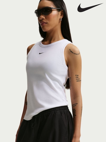 Nike White Ribbed Racerback Vest Top