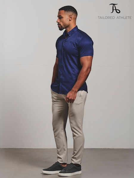 Tailored Athlete Blue Muscle Fit Short Sleeve Signature Shirt