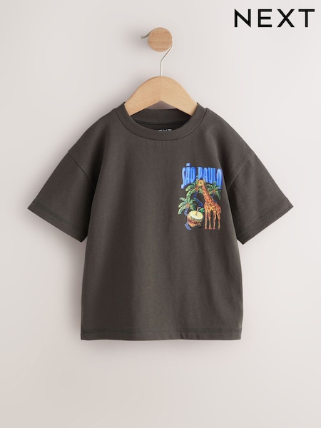 Charcoal Grey Sao Paulo Short Sleeve Back Print T-Shirt (3mths-7yrs)