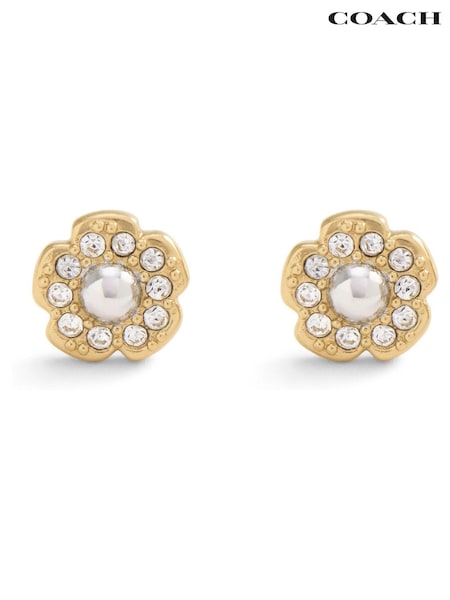 COACH Gold Tone Signature Mini Tea Rose Stud Earrings