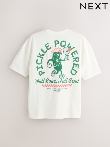 White Pickleball Relaxed Fit Graphic Print Heavy Weight T-Shirt