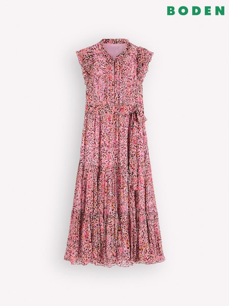 Boden Brown Amber Pleat Jersey Midi Dress