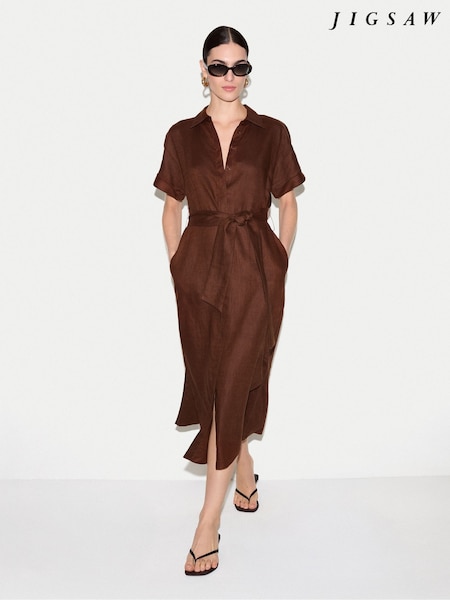 Monsoon Brown Lily Square Neck Linen Midi Dress