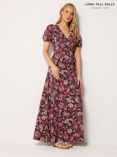Long Tall Sally Brown Floral Wrap Maxi Dress