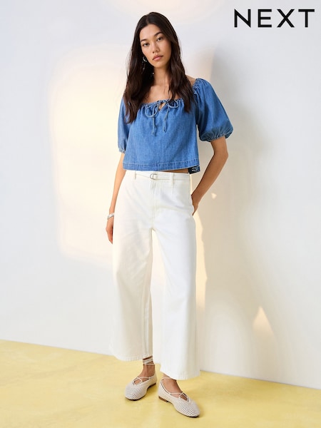 White Belted Wide Leg Cropped Jeans