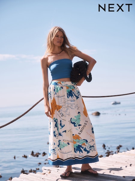 Multi Bright 100% Cotton Wrap Midi Skirt