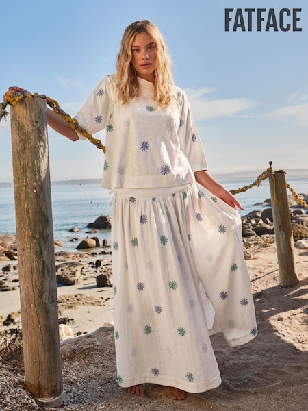 FatFace Kit Ivory Embroidered Midi Skirt
