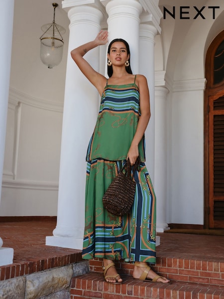 Emerald Green Lace Cutout Trim Satin Cami Top
