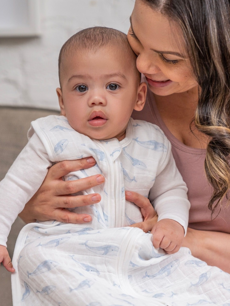Our cotton muslin sleeping bag keeps them feeling comfy + secure. Designed to be worn over pyjamas and to eliminate the need for unsafe loose blankets in the cot. Made from breathable cotton muslin to allow airflow and reduce the risk of overheating. The convenient inverted zip makes nappy changes a breeze. Includes 1 pre-washed 1.0 sleeping bag Available in 3 sizes: 0–6 months, 6–18 months, 18–36 months Breathable fabric and sleeveless design allow airflow Inverted zip for easy nappy changes Machine washable + softer with every wash Conforms to safety standard BS EN 16781: 2018 Machine washable. 100% Cotton. Country of Origin: Great Britain