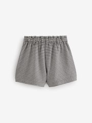 She'll love these stylish monochrome check shorts, featuring an elasticated waistband with a button and zip fastening and an adjustable drawstring. The shorts also feature side pockets, finished with belt loops. Regular fit Elasticated waistband Adjustable drawstring Side pockets Belt loops Button and zip fastening 49% Viscose, 49% Polyester, 2% Elastane. Country of Origin: Myanmar