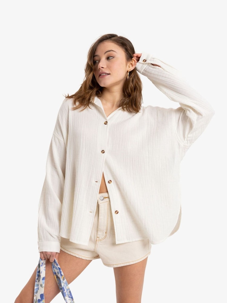 Roxy Cream Morning Time Long Sleeve 100% Cotton Shirt
