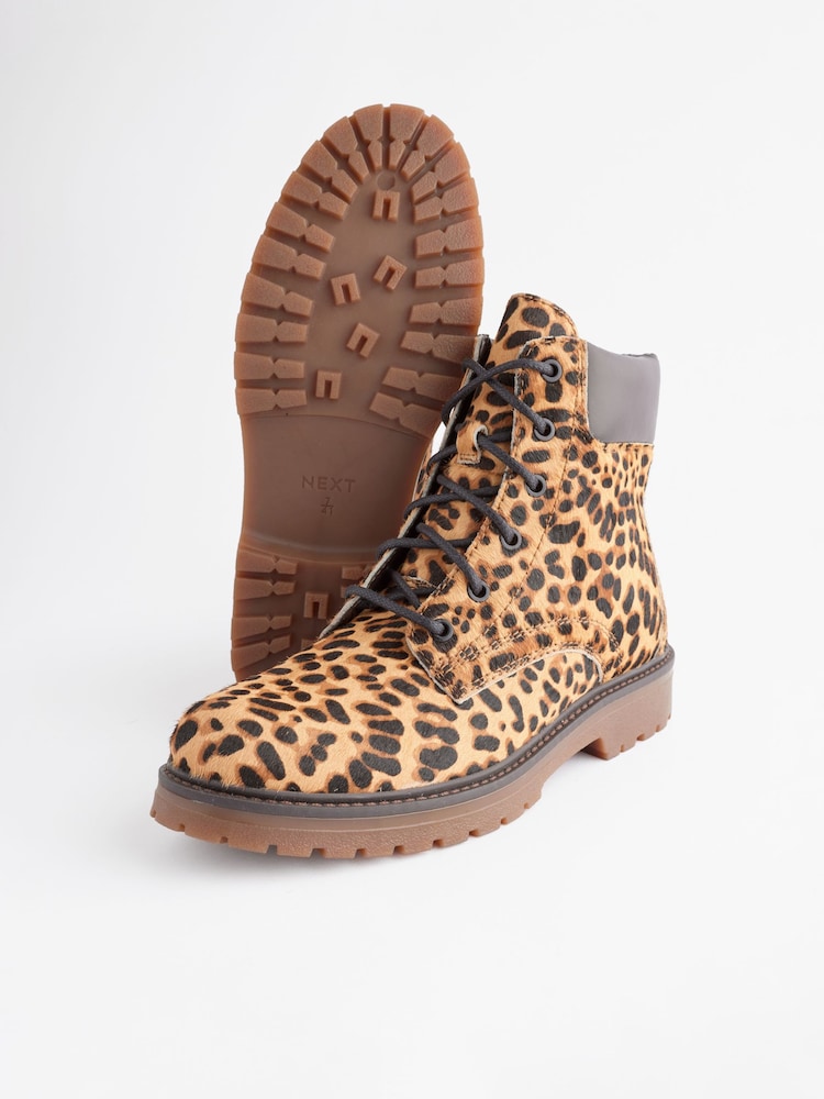 Leopard Standard/Wide Fit Forever Comfort® Lace-Up Collared Boots