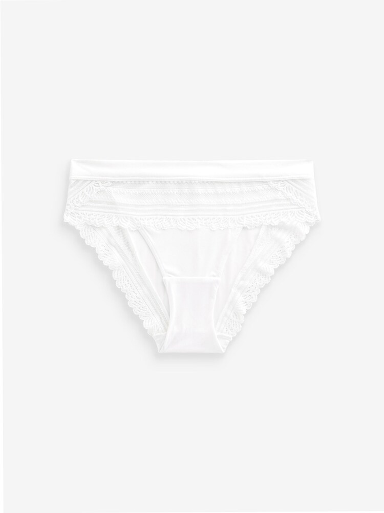 This product has a tighter fit than usual. You'll love the feel-good fit of these white supersoft knickers, part of our Forever Comfort® range. Available in two flattering shapes, they're decorated with delicate lace detailing for a feminine finish. Machine washable. Main 73% Nylon, 27% Elastane. Gusset 100% Cotton. Country of Origin: Bangladesh Items with the curve logo are available in sizes 18 and above.