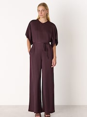Whistles Navy Satin Short Sleeve Jumpsuit Hand wash only. 100% Viscose. Country of Origin: China